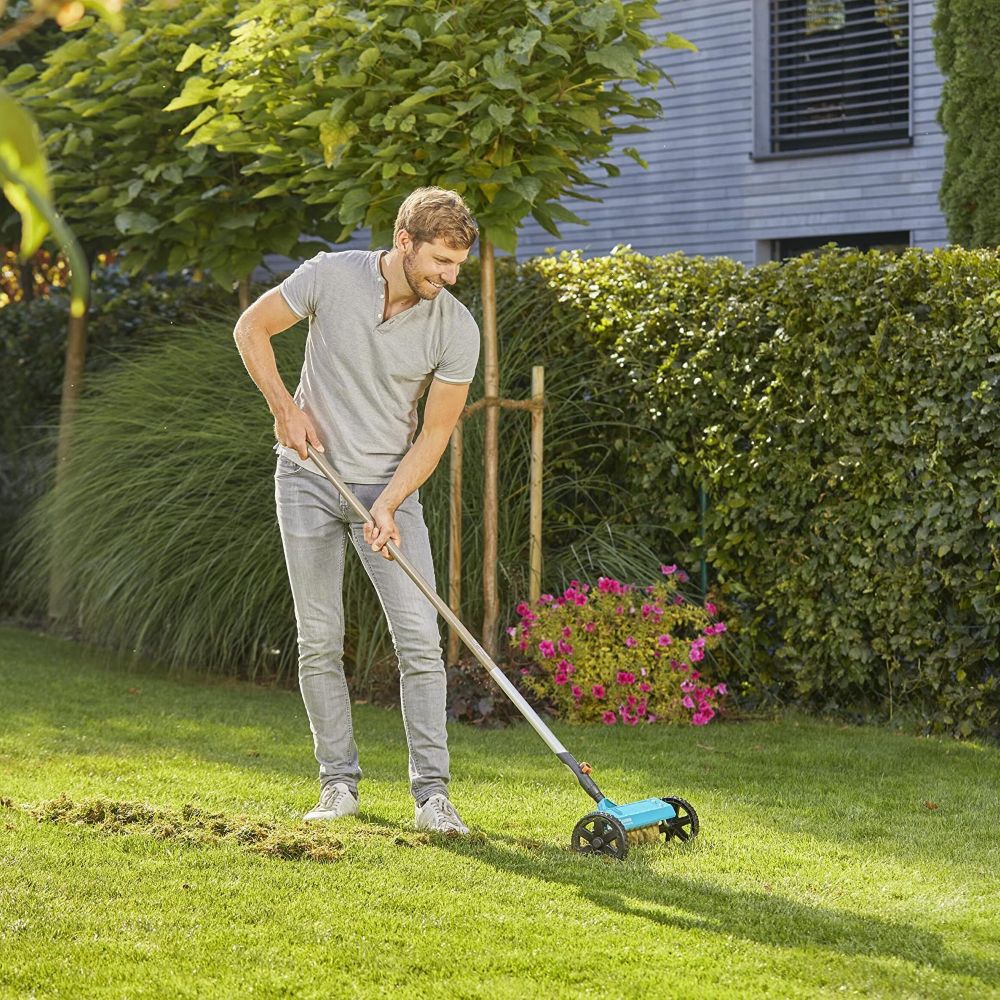 Со GARDENA combisystem Vertical Cutter (3395-20) можете да отстраните мов, сува трева и плевел од вашиот тревник. Ова ја подобрува апсорпцијата на воздухот, водата и хранливите материи на тревникот. Специјални шипки со мазно лизгачки грб изработени од висококвалитетен нерѓосувачки челик со пружини продираат низ тревникот милиметарски и ја отстрануваат несаканата сува и мртва трева од почвата. Работната ширина е 32 cm. Цврстите тркала со специјална шарка и оска за поддршка ја олеснуваат работата.Оваа алатка одговара да се користи со сите рачки на комбисистемот GARDENA, при што GARDENA препорачува должина на рачката да биде 180 cm, во зависност од висината на телото. *Напомена: Цената на алатката е без рачка.