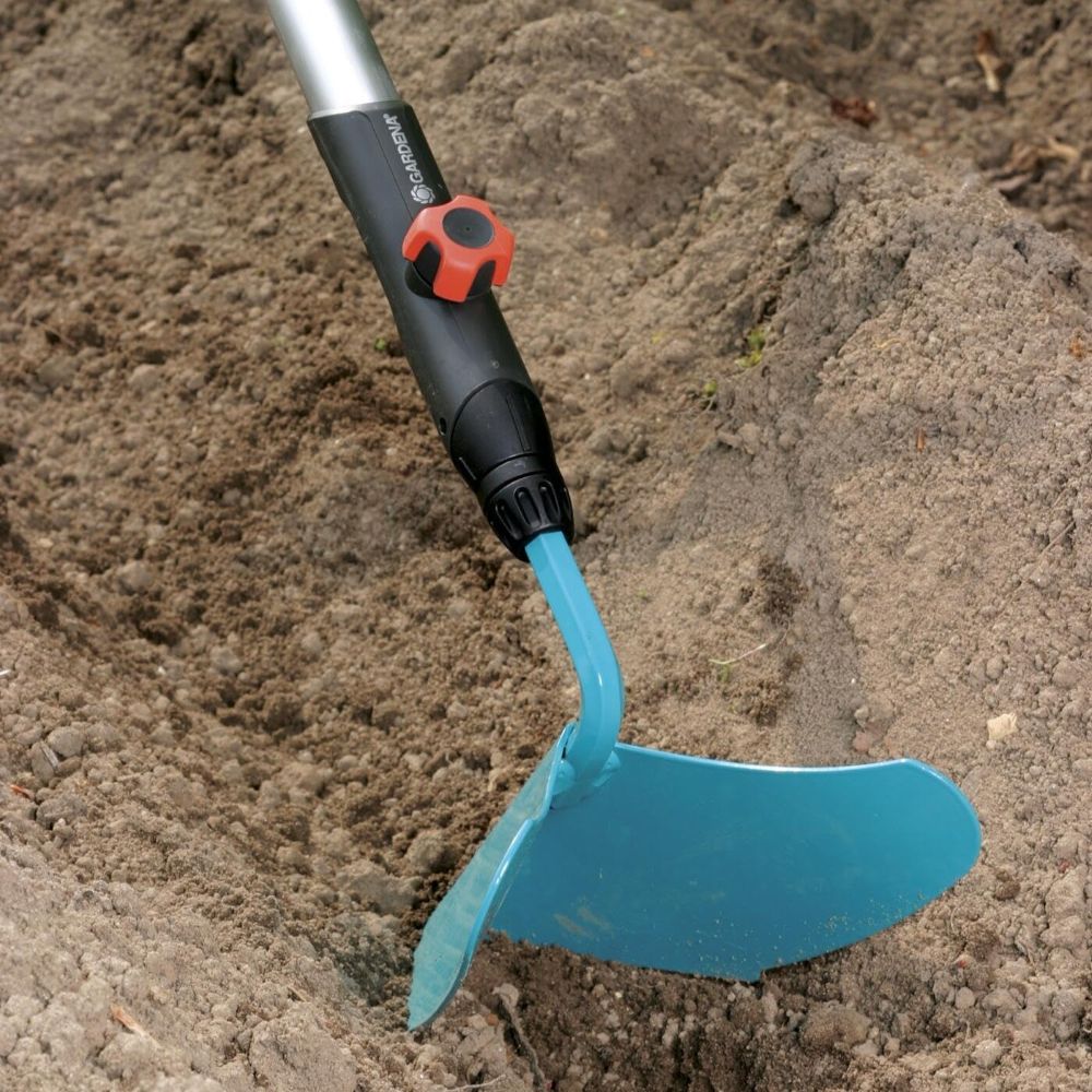 Со практичниот GARDENA combisystem Ridge Plough (3118-20), можете да направите леи за садење зеленчук како на пр. компири или друг. Combisystem GARDENA овозможува флексибилна употреба, благодарение на разменливите додатоци. Плугот е компатибилен со сите рачки на combisystem-от GARDENA и може да се монтира и прицврсти со рачката. GARDENA препорачува рачка со должина од 150 cm, изборот на рачката зависи од работните услови и висината на вашето тело. Сигурната врска помеѓу плугот и рачката гарантира дека секогаш можете да работите удобно. Зашилениот врв лесно ја крши почвата, овозможувајќи ви да направите бразди. Плугот е со работна ширина од 16 cm и е изработен од висококвалитетен челик. Благодарение на облогата Duroplast, тој е заштитен од корозија. За удобно складирање, можете да го користите combisystem Tool Rack Flex (арт. бр. 3505-20). Нека расте вашето семејство на алатки. Combisystem GARDENA. Заменливи. Издржливи. За секоја градинарска задача.