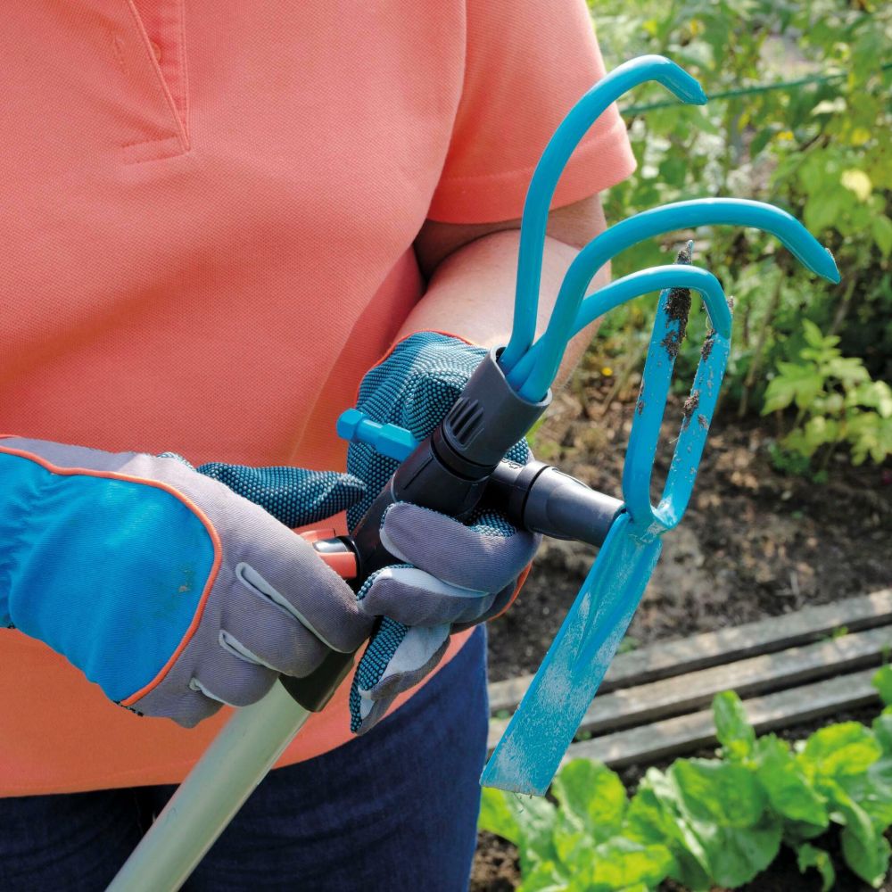 Рачниот култиватор (3166-20) од GARDENA combisystem има три цврсти канџи кои се оптимално прилагодени за олабавување и проветрување на почвата додека корените остануваат недопрени. Сombisystem GARDENA овозможува флексибилна употреба, благодарение на разменливите додатоци. Алатката е компатибилна со сите рачки на комбисистемот GARDENA и може да се монтира и прицврсти со одбраната рачка. GARDENA препорачува рачка со должина од 130 cm, изборот на рачката зависи од работните услови и висината на вашето тело. Безбедното поврзување помеѓу култиваторот и рачката гарантира дека секогаш можете да работите удобно. Со работна ширина од 9 cm е најпогодно за каменито земјиште и за блиску поставени растенија. Благодарение на висококвалитетниот челик и облогата Дуропласт, греблото има долг животен век. Нека расте вашето семејство на алатки. Сombisystem GARDENA. Заменливи. Издржливи. За секоја градинарска задача.