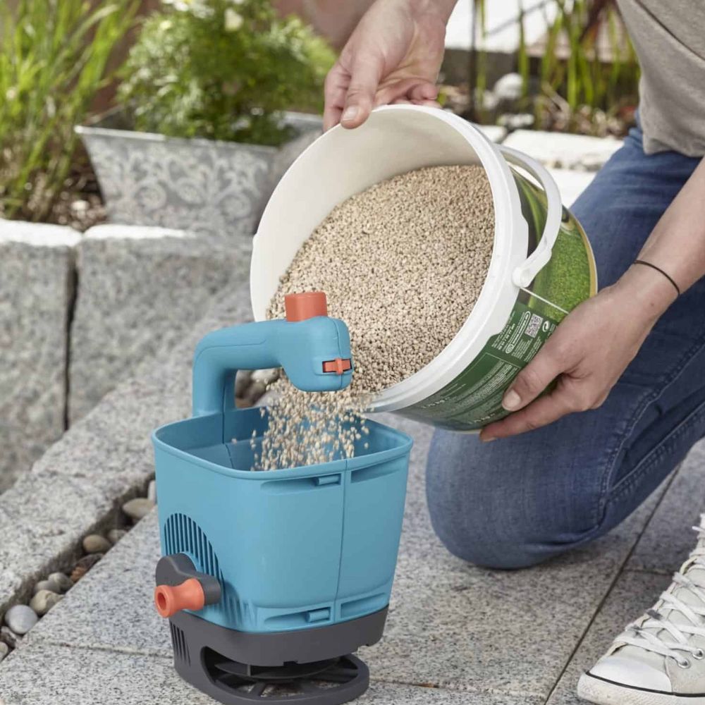 Страст секоја сезона! Рачниот распрскувач М од GARDENA (431-20) е идеално погоден за рамномерно расфрлање на ѓубриво, семиња и зимски гриз на помали површини до 100 m² и затоа може да се користи во текот на целата година. Благодарение на ергономската рачка и урамнотежениот центар на гравитација, распрскувачот е удобен и лесен за држење. Можете да ја поставите стапката на расфрлање на 4 нивоа на рачката и да ракувате со механизмот за отворање/затворање со палецот. Опсегот на дистрибуција е од 1 до 4 метри и зависи од брзината на рачката и видот на материјалот кој се распрскува.