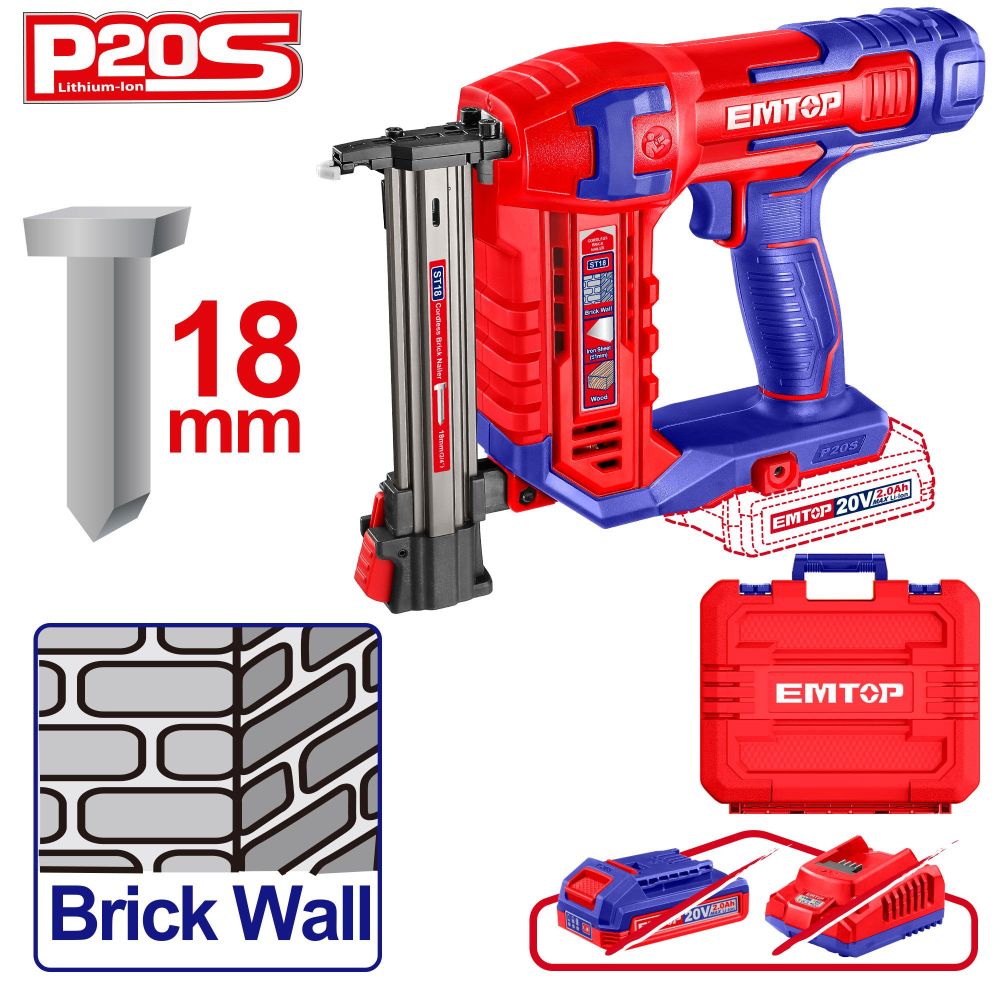*Забелешка: Машината не вклучува батерија или полнач. Компатибилен е со сите 20 V (P20S) Emtop батерии и полначи.