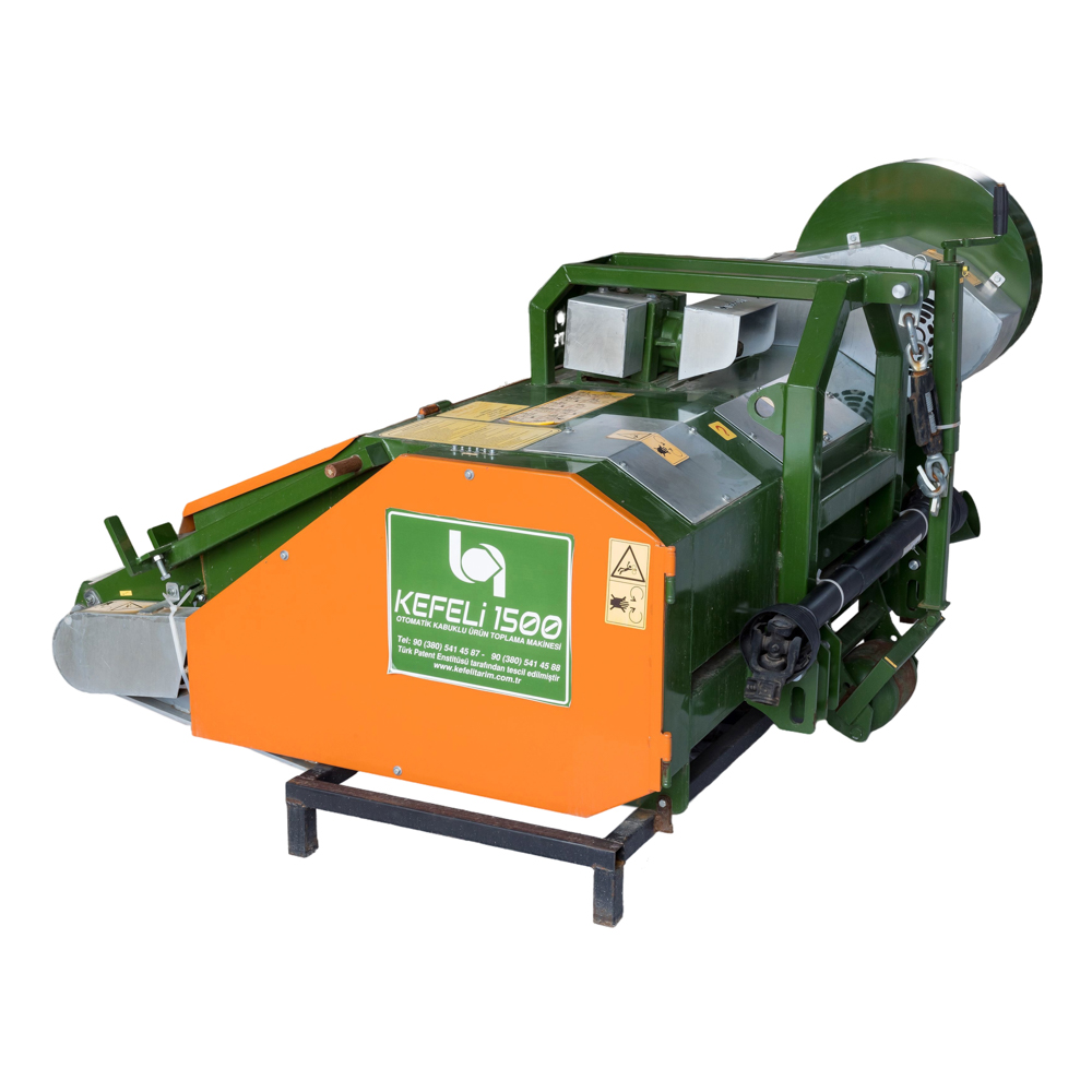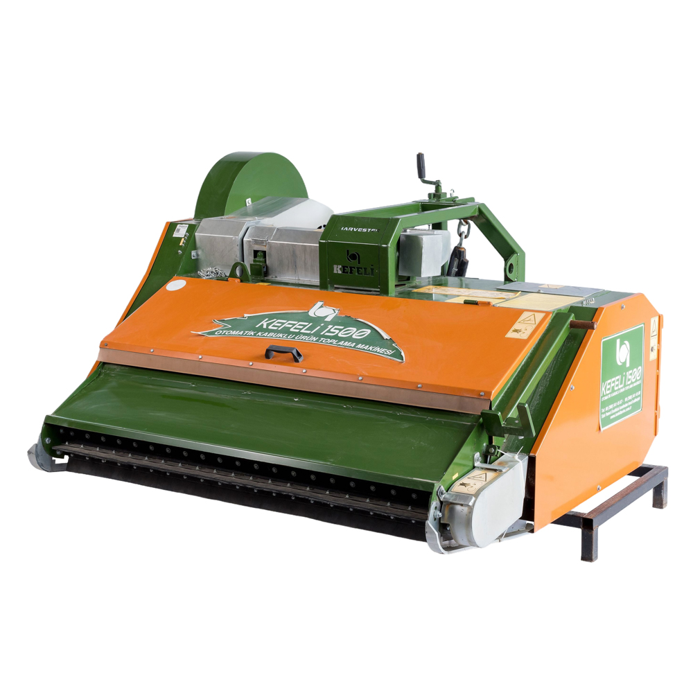 Механички собирач на лешници, костени, бадеми, ореви итн. Најдобро работи на рамни и малку наклонети терени. Колекторот KEFELI модел 1500TT има 3 спирали (1 сито за чешлање, 1 сито за гранулација, 1 сито за транспорт). Овој модел има функција за собирање и неколку лешници. Повеќе спирали значи дека лешникот подобро се обвиткува.