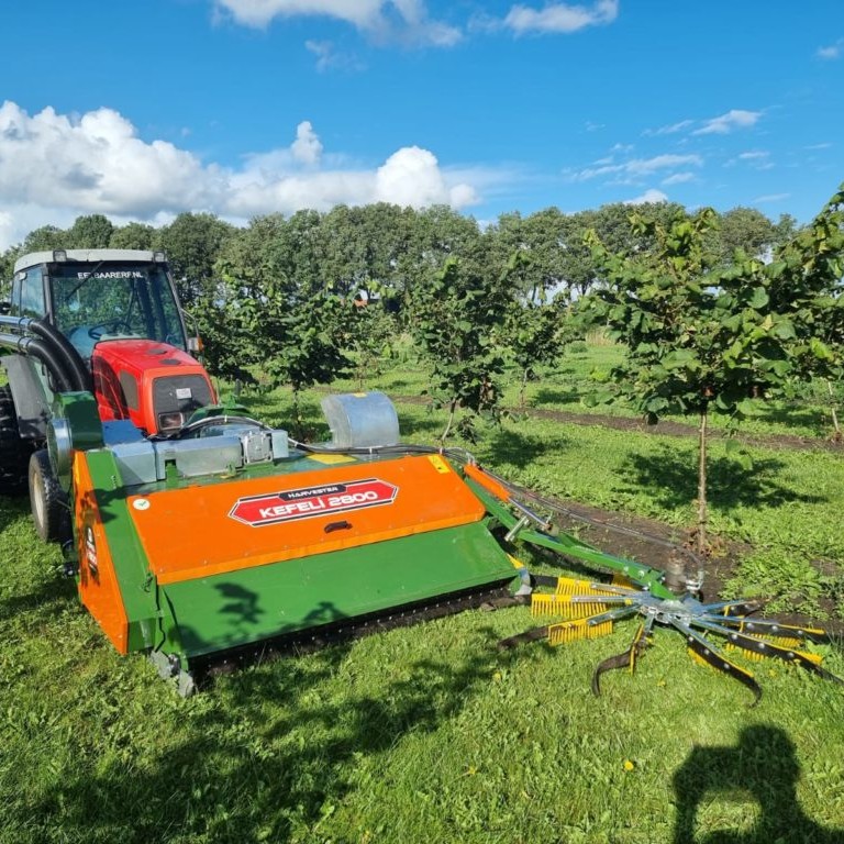 Механичка машина за собирање лешници, костени, бадеми, ореви итн. Најдобро работи на рамни површини и малку наклонети површини. Собирачот KEFELI модел 2800 има 2 спирали (1 сито за гранулација и 1 сито за транспорт). Бербата на лешници е поврзана со тракторот преку карданско вратило, а се прицврстува класично, во три точки. Потребна е брзина на PTO од 540 вртежи во минута. Во зависност од подготовката на земјиштето, купете до 650 кг/ч. Потребен е трактор посилен од 35 коњски сили. За побрза работа, има странична четка, која ги собира плодовите од редовите и ги пренесува под машината. Со четката, брзината на собирање се зголемува. Страничната четка е поврзана преку хидрауличен пар преку кој протокот на хидраулично масло ја ротира четката. За најдобар ефект, потребно е да се подготви работната површина и редовно да се премачкува (косење на тревата) неколку пати во текот на годината. Не се препорачува да се премачкува високата трева пред самата берба. Подобро е да се премачкува најмалку двапати во август (подгответе што е можно порано).