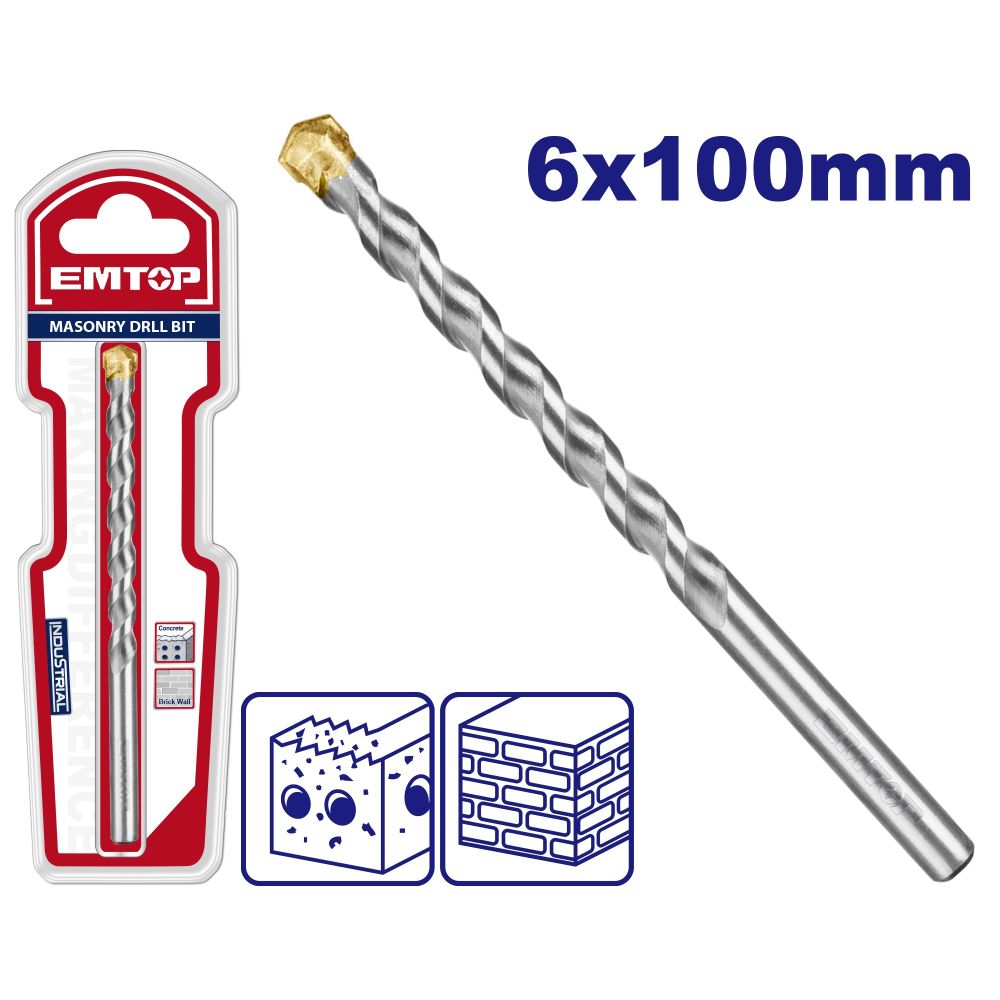 бургија 6×100 mm со висококвалитетен TCT врв, тело од хромиран челичен челик, се користи за бетон и гранит со висока цврстина.