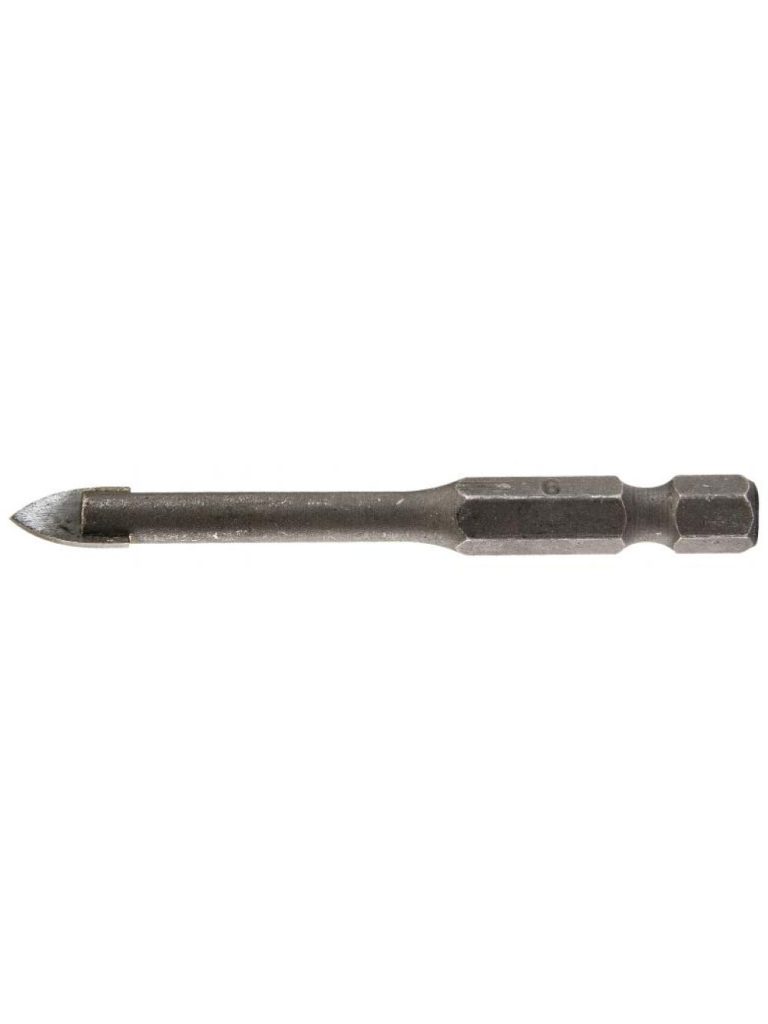 бургија за стакло 1/4″ шестоаголна 4×65 мм, остра, прецизно брусена волфрам-карбидна стрелка, погодна за стакло, керамика, плочки, огледала и друго.