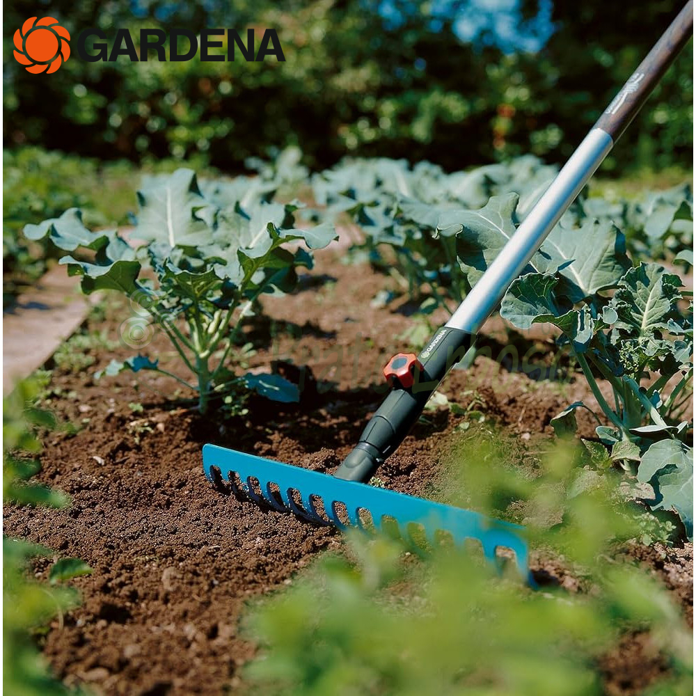 Combisystem греблото GARDENA е вашата практична повеќенаменска градинарска алатка и е идеално прилагоденo за гребење, израмнување или обработка на почвата. Combisystem-от GARDENA овозможува флексибилна употреба, благодарение на разменливите додатоци. Греблото е компатибилно со сите рачки на Combisystem-от GARDENA и може да се монтира и прицврсти со рачката. GARDENA препорачува рачка со должина од 150 cm, изборот на рачката зависи од работните услови и висината на вашето тело. Сигурната врска помеѓу греблото и рачката гарантира дека секогаш можете да работите удобно. Работната широчина е 30 cm и греблото има 12 шипки. Благодарение на висококвалитетниот челик и облогата Duroplast, греблото е оптимално заштитено од корозија и особено издржливо. Со combisystem Tool Rack Flex (арт. бр. 3505-20), можете да обезбедите место за складирање на греблото што заштедува простор. Нека расте вашето семејство на алатки. Combisystem GARDENA. Заменливи. Издржливи. За секоја градинарска задача.