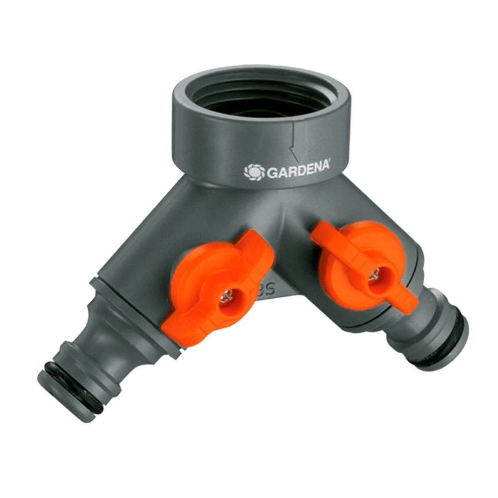 Двоjниот конектор GARDENA 33,3 mm (G 1″) ви овозможува да поврзете два уреди на една чешма: Наводнувајте ги вашите цветни леи практично преку еден излез, додека прскалката го презема наводнувањето на вашиот тревник преку вториот приклучок! Протокот може лесно да се регулира на двата излеза. Благодарение на нивните сопствени контроли на проток, приклучоците може да се ракуваат независно еден од друг. Двонасочниот конектор е погоден за чешми од 26,5 mm (G 3/4″) со навој од 33,3 mm (G 1″). Како дел од оригиналниот систем GARDENA, едноставно се прицврстува на компатибилната чешма за вода и ви нуди две опции за поврзување за конектори за црево GARDENA со сигурен и апсолутно водонепропустлив приклучок. Овој конектор за чешма е направен од висококвалитетен, издржлив материјал, што обезбедува долг век на траење и сигурна употреба. Оригиналниот систем GARDENA.