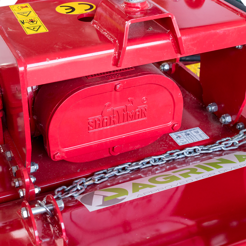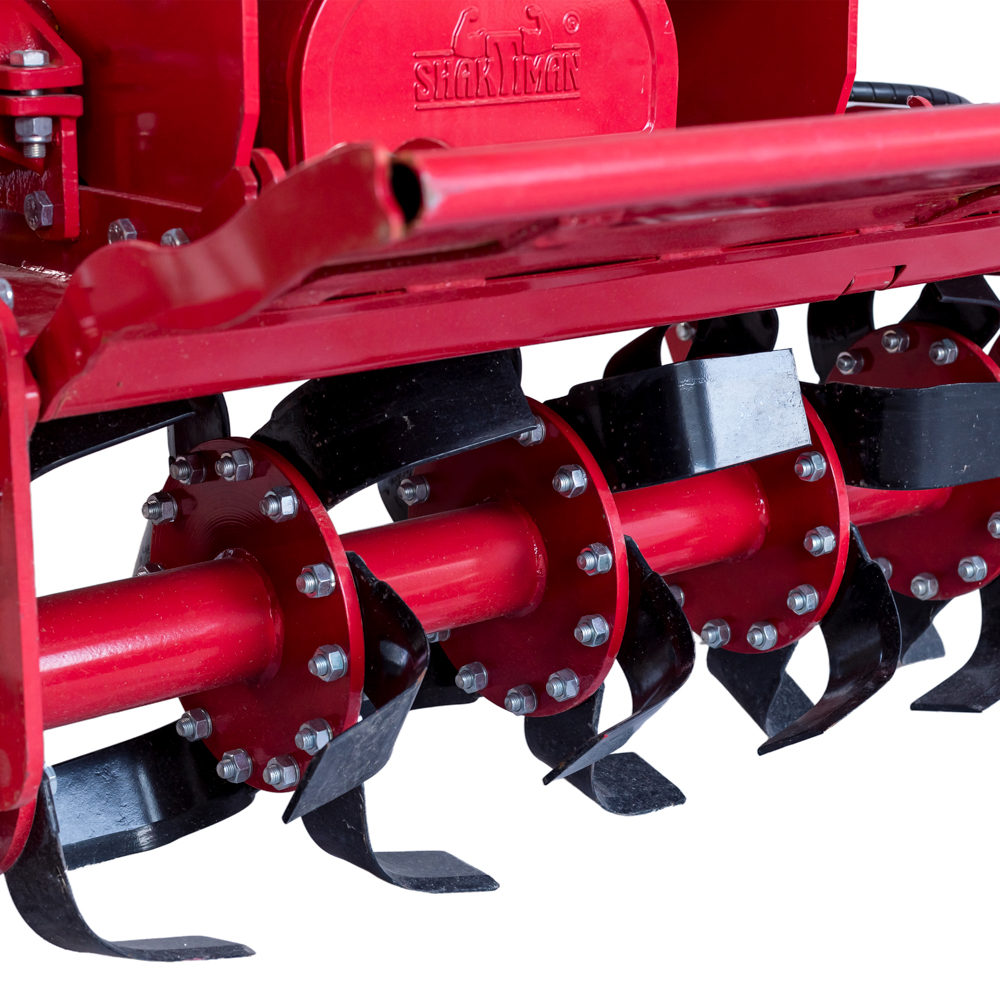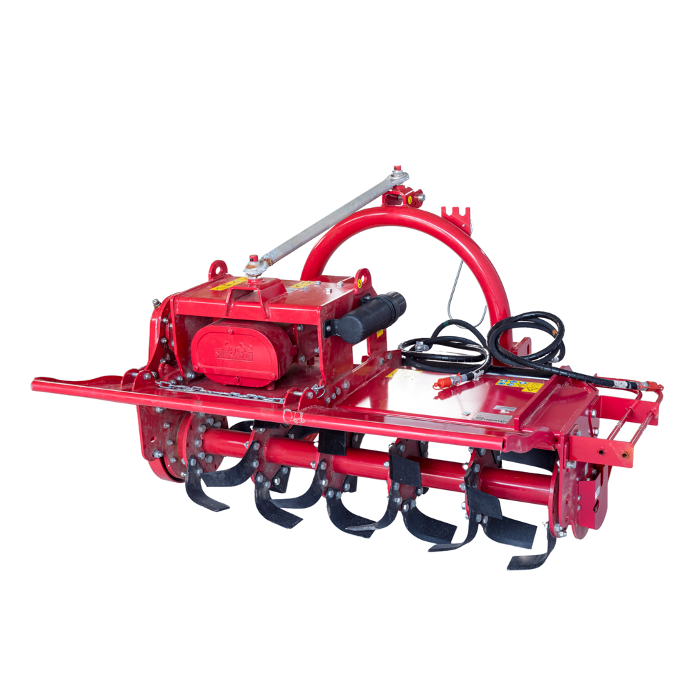 Моторна култиваторка монтирана на трактор со хидраулично странично движење и работна ширина од 1350 mm. Се користи за орање и подготовка на почвата пред сеидба и садење.