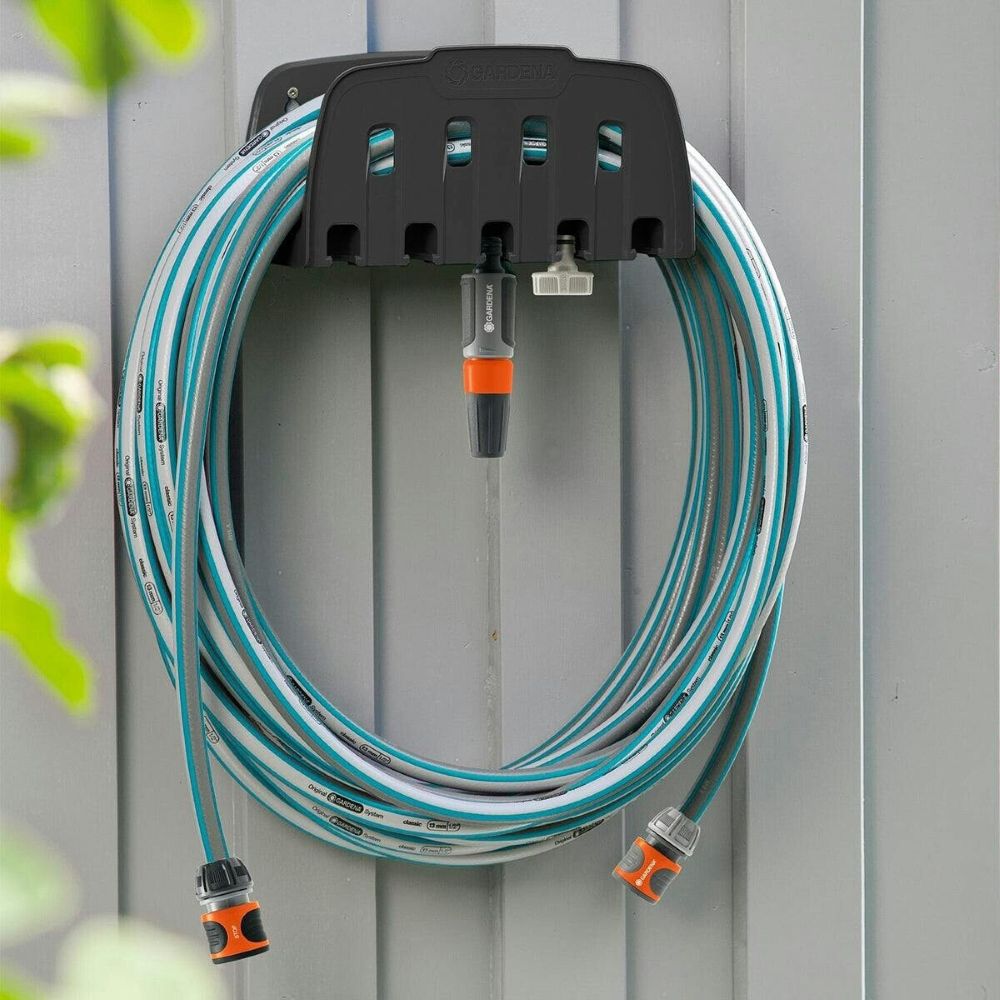 Едноставно, компактно и ненаметливо: со овој едноставен ѕиден држач за црево од GARDENA можете да го чувате вашето градинарско црево на ѕидот на начин што заштедува простор. Под држачот имате опција за складирање на вашите оригинални додатоци за наводнување GARDENA, како што се распрскувачи и прскалки. Секогаш ќе имате при рака сè што ви треба за наводнување: Едноставно извадете го градинарското црево, поврзете го и почнете да наводнувате. По употреба, можете лесно да го навиткате цревото за вода на држачот без никакви свиткувања или јазли. Благодарение на висококвалитетните материјали и изработката, држачот за градинарско црево е особено тежок. Идеално решение без разлика дали имате голема градина или мал двор, со својата компактна големина и лесна опција за монтирање, држачот за црево е погоден за секоја големина на градина. Заштитата од мраз го спречува оштетувањето на малиот држач за црево во ладни студени ноќи и снежни денови. Држачот за црево GARDENA е произведен во Германија, со што се гарантира неговиот висок квалитет и издржливост.