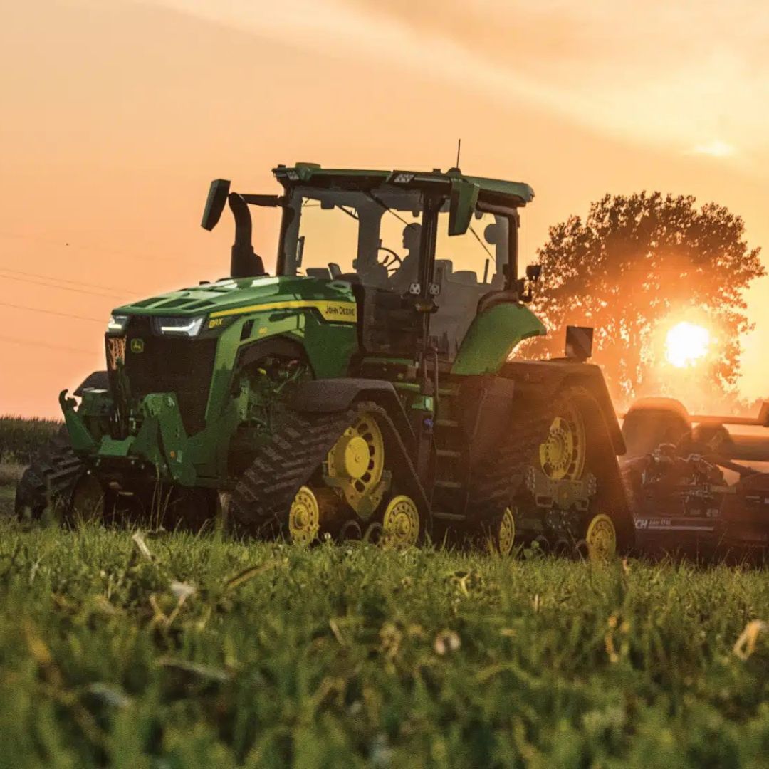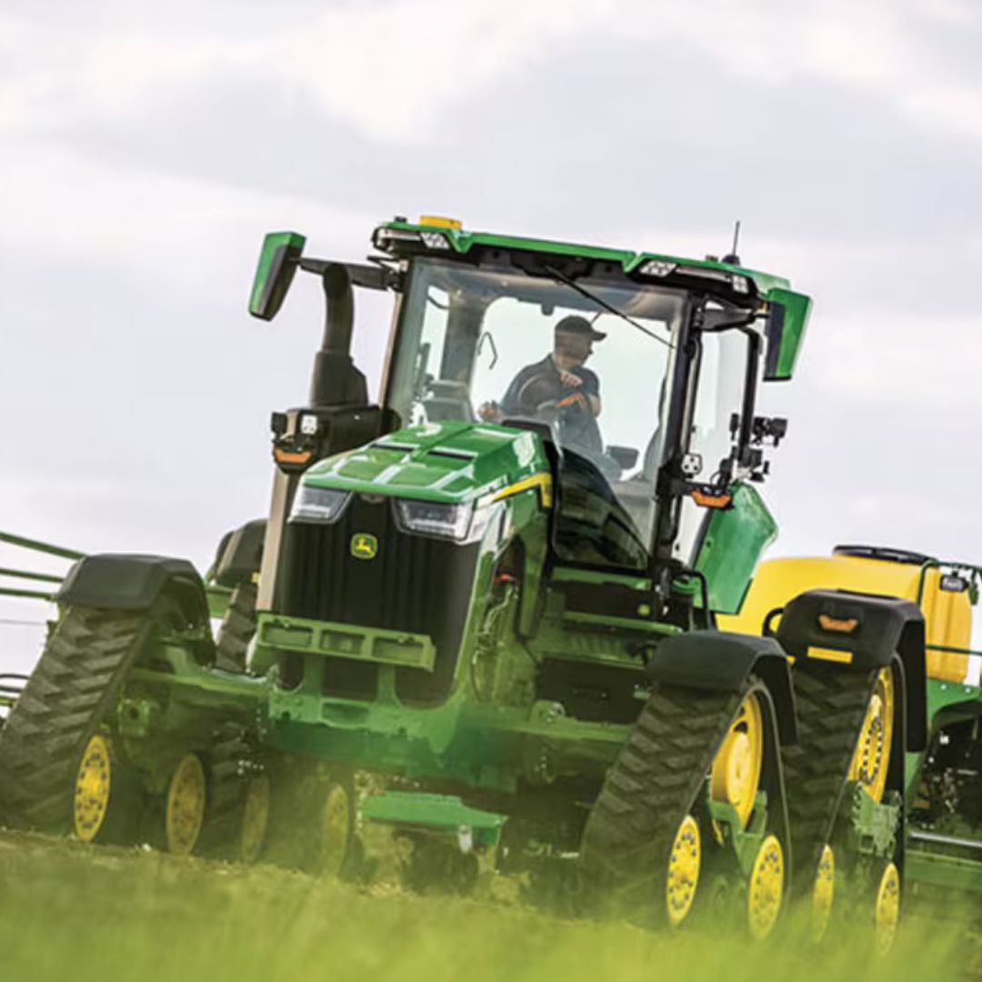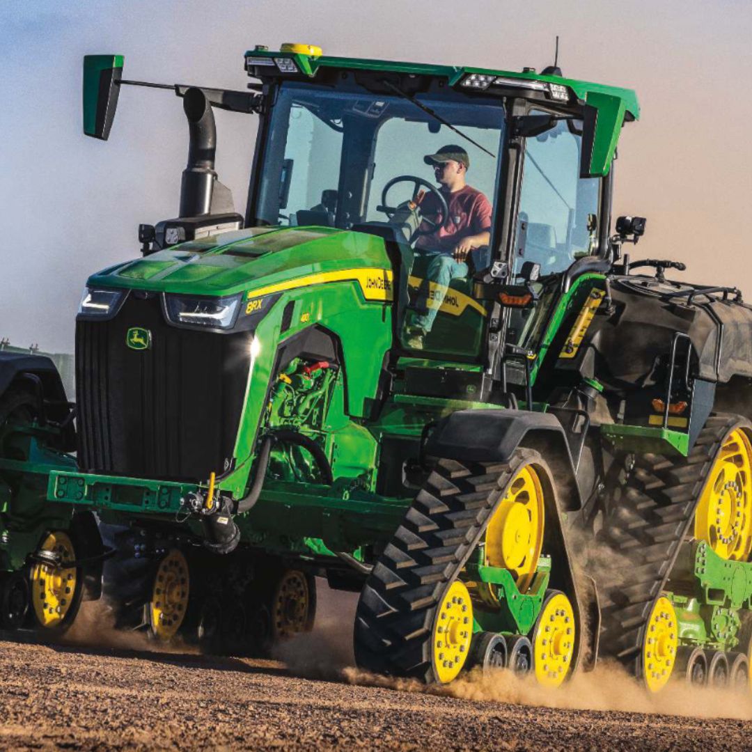 Единствениот трактор на пазарот со 4 погонски гасеници монтирани на 4 независни фиксни рамки што обезбедува исклучителна влечна сила (40% повеќе од моделите на тркала), удобност и контрола карактеристични за John Deere.