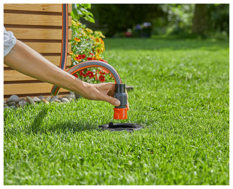 Конектор за подземни цевки кој се употребува за транспорт на вода во системите за наводнување од  Gardena. Има 3/4″ -машки излез.