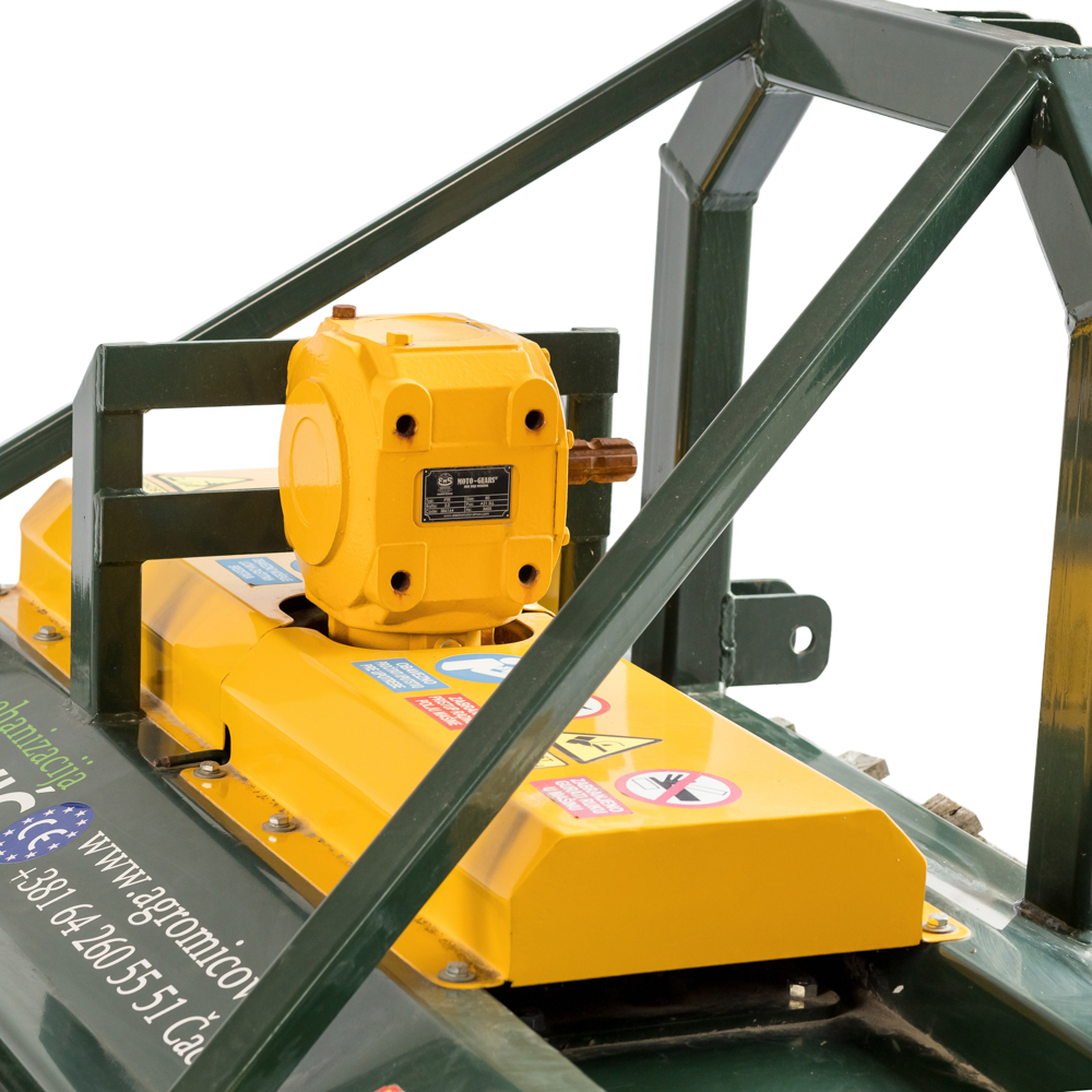 Косачка за трева со фиксна структура, работна ширина 1,5 м. Цврста и компактна конструкција, мазна површина гарантира максимална сигурност и ефикасност на која било површина! Косењето се врши совршено благодарение на масивниот ротор со три крака со зглобни сечила. Благодарение на ваљакот што се наоѓа на крајот од косилката, со кој се прилагодува самата висина на сечење, се постигнува максимална адаптација на кој било терен! Област на употреба: одржување на зелени површини во овоштарници, лозја, малинови градини, јавни површини, паркови и плантажи со пченица и пченка.