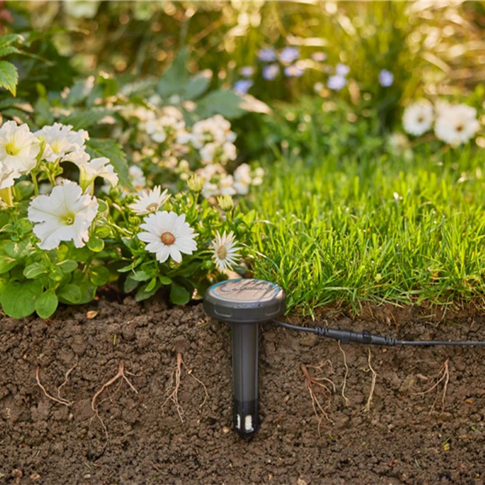 Наводнувањето на вашата градина никогаш не било толку едноставно и точно: иновативниот сензор за влага во почвата од GARDENA автоматски гарантира дека вашата градина се наводнува според потребите и заштедува вода со мерење на моменталната влажност на почвата и пренесување на таа информација до вашиот компјутер за вода од Gardena. Ако почвата е сè уште доволно влажна, претстојниот циклус на наводнување се прескокнува. На овој начин, вашите растенија автоматски добиваат сигурна и точна грижа, додека како дополнителен бонус, заштедувате вода. Сензорот е компатибилен со речиси сите компјутери за вода на GARDENA. Поради својата компактна големина, сензорот за влага на почва кој работи на батерија не само што може да се користи во тревниците или цветните леи, туку е погоден и за помали саксии. Сензорот има има особено мала висина и рамна површина така што косилките и роботските косилки лесно можат да го надминат. Кабелот за поврзување долг пет метри овозможува флексибилна инсталација и може да се продолжи по потреба со продолжен кабел достапен како додаток. За да имате преглед на наводнувањето, можете да ги видите отчитувањата на сензорот на поврзаниот компјутер за вода. Кога двете AA батерии се скоро празни тоа е означено и на КОМПЈУТЕРОТ за вода и на LED-светилката во преградата за батерии. Батериите треба да траат околу една година во работа. На овој начин, сензорот за влага во почвата може секогаш да работи сигурно за да обезбеди наводнување согласно вашите потреби и да заштеди вода.