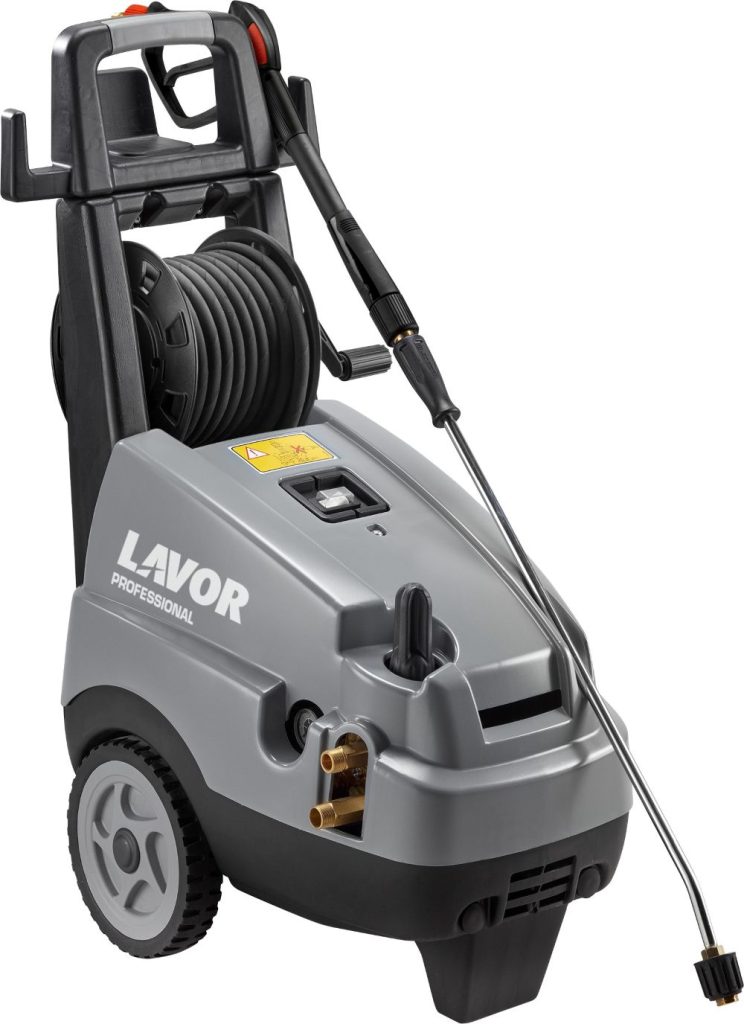 Машина за перење под висок притисок за професионална употреба. Овозможува брзо и лесно отстранување дури и на најтврдокорните нечистотии од разни предмети. Има четириполен електричен мотор, месингана пумпа со керамички заштитени клипови, систем за заштита од прегревање (водено ладење) и вграден резервоар за детергент.