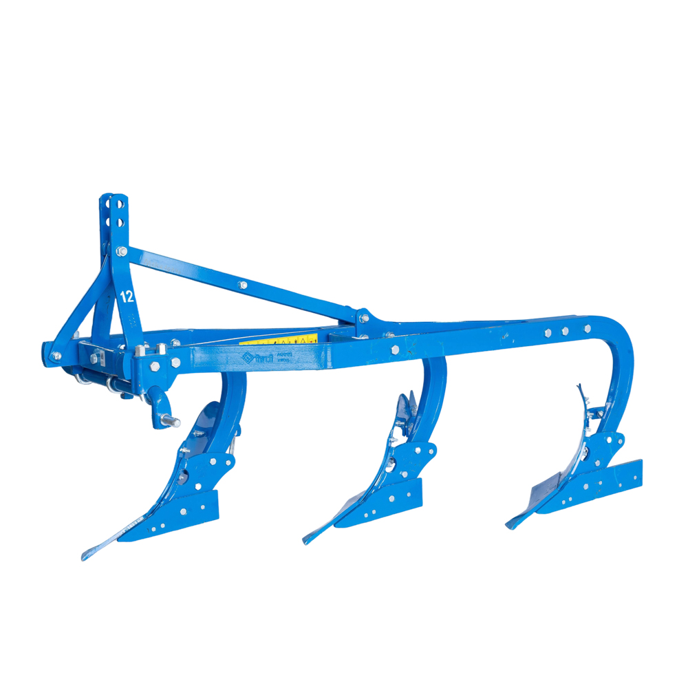Конвенционални плугови со 3 бразди за еднонасочно орање, големина на плуг 12″, лесна до средна тежина, овозможуваат лесни и практични земјоделски апликации. Предности: Широк спектар на опции, фиксно тело за цврсто орање, исклучително издржлив површински слој нанесен со електростатско прашкасто премачкување (процес на електростатска пластификација на метал), дизајнирани за мали парцели. Дополнителен век на траење благодарение на технологијата за термичка обработка на челик UNLU.