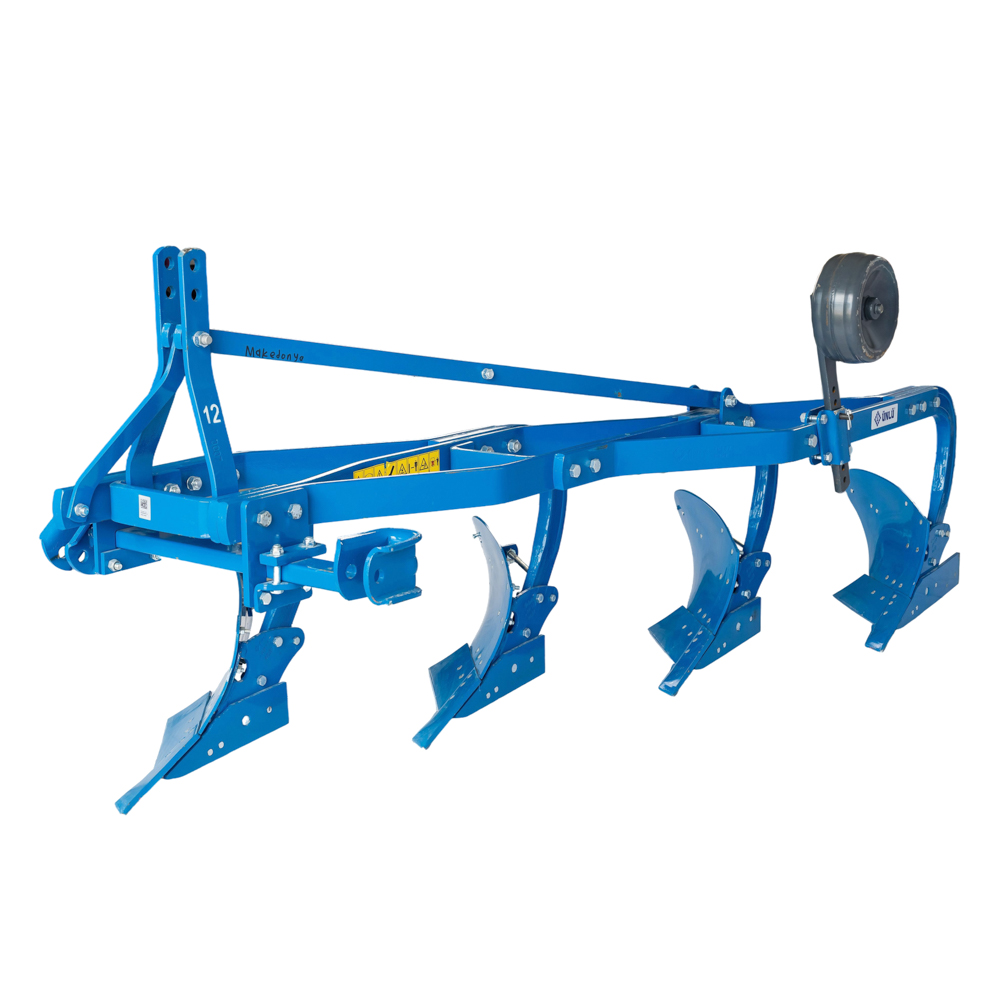 Конвенционалните плугови со 4 бразди за еднонасочно орање, големина на плуг 12″, лесна до средна тежина, овозможуваат лесна и практична земјоделска примена. Предности: Широк спектар на опции, фиксно тело за цврсто орање, исклучително издржлива површина добиена со електростатска пластификација на метал. Дизајниран за мали површини. Дополнителен век на траење благодарение на UNLU технологијата за термичка обработка на челик.
