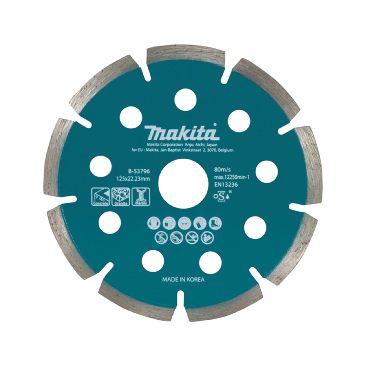 Дијамантското сечило Makita од 125 мм е идеално за безбедно и брзо сечење, нудејќи издржливост и брзина при употреба. Погодно за гранит, витрифицирана глина, пороз камен, тврда тула, шкрилец, тврд варовник, клинкер, варовничка тула, средно тврда тула, ситнозрнеста тула, бетон, гипс, тврд камен.