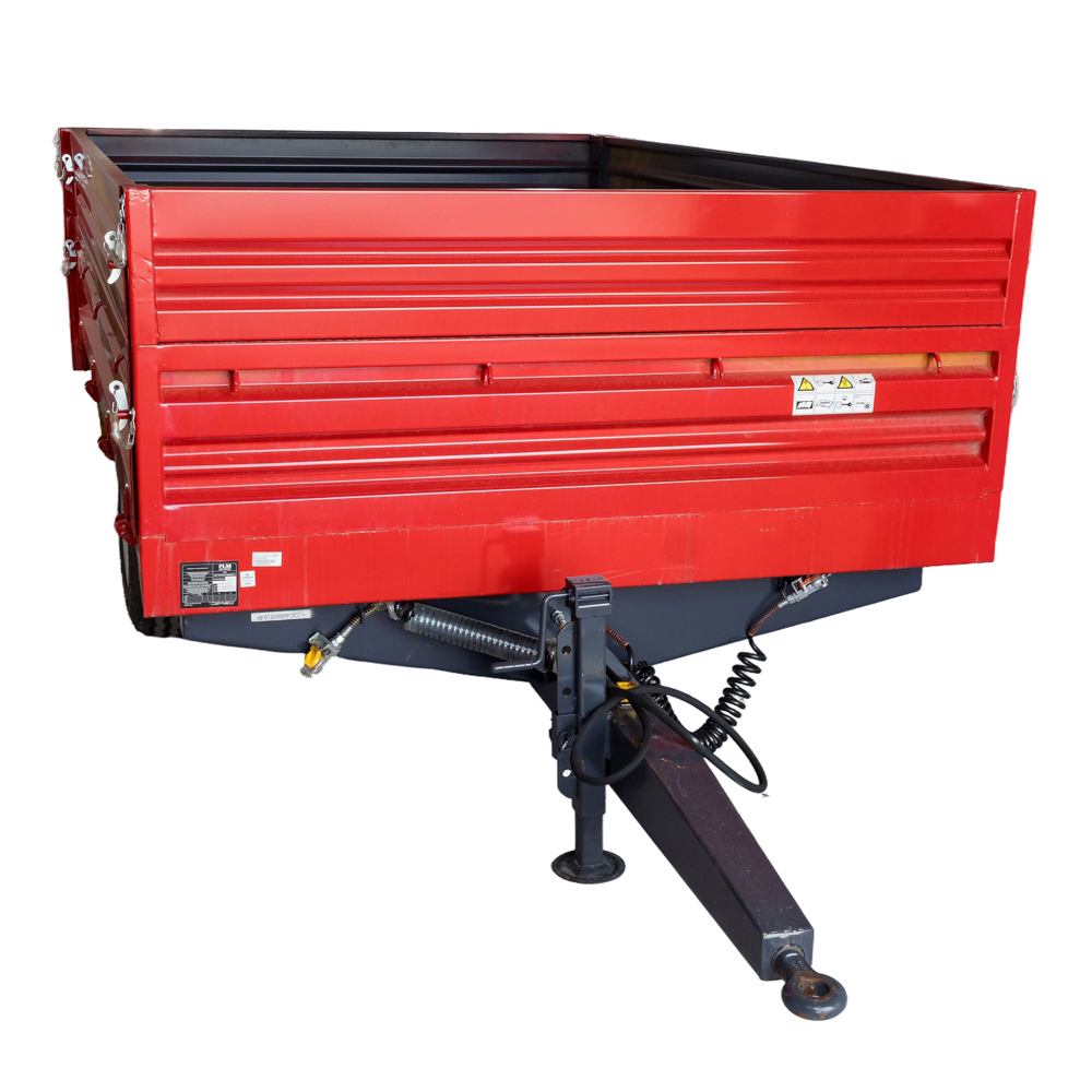 Приколка со една оска со носивост до 4 тони, со воздушни сопирачки, балон гуми, двојни страни и тространо кипање.