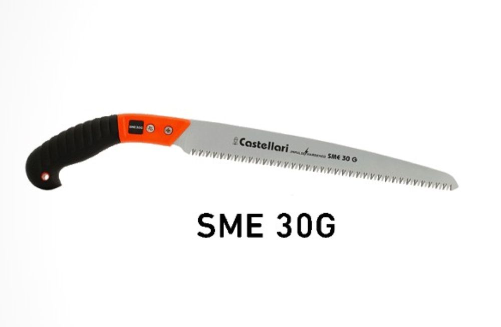 Ručna testera za profesionalnu upotrebu iz Castellarijeve G serije. Oštrice od visokougljičnog čelika su obložene tvrdim hromom kako bi se oduprle rđi i povećale prodiranje grana. Precizno sečenje čini površinu drveta glatkom i ravnom, sprečavajući infekcije i omogućavajući brzo formiranje zaštitnog tkiva na grani.Zubi su naoštreni na tri nivoa tako da je njihova oštrina dugotrajna. Posebna obrada sečiva pod nazivom “površinsko brušenje” pomaže sečivu da prodre u granu drastično smanjujući trenje.