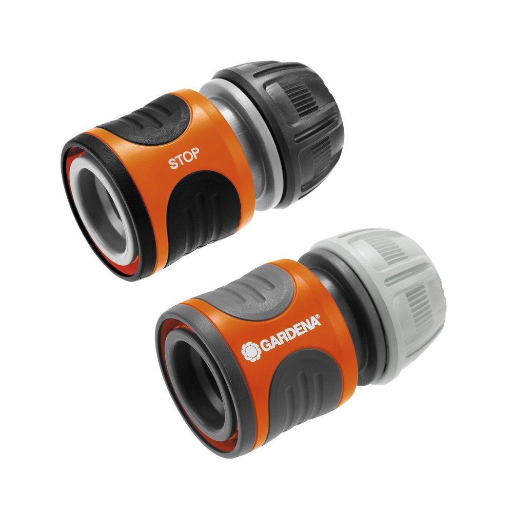 Water Stop спојката е практична за поврзување на додатоците од Gardena кои ќе ви помогнат при наводнување во градината. Прикачена е на крајот на цревото и влегува во акција секогаш кога сакате да смените додаток за наводнување. Функцијата за автоматско запирање на водата веднаш го прекинува протокот на вода и започнува повторно само штом ќе приклучите нов додаток за наводнување, како што е прскалка или распрскувач. Ова ви го заштедува досадното патување до чешмата. Затоа, додека ја користите оваа спојка не треба да ја исклучувате чешмата. Одговара на црева со дијаметар од 13 mm (1/2″) и 15 mm (5/8”) црева.