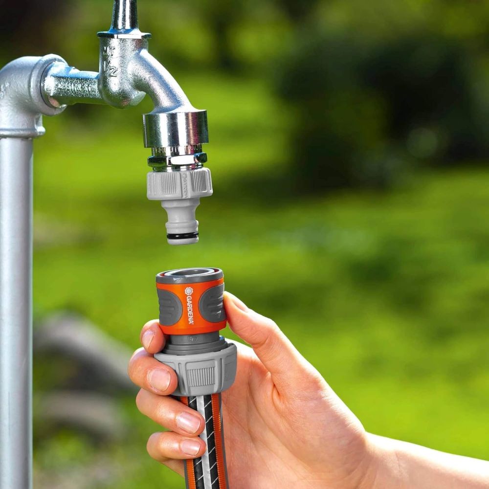 Конекторот за 19мм (3/4″) црева од GARDENA е корисен адаптер што можете брзо и лесно да го поврзете со доводот на вода. На крајот од приклучокот за црево ќе го најдете еластичниот прстен, кој служи како заштита од оштетување. Power Grip-от ви го олеснува прицврстувањето на конекторот со црево. Покрај тоа, специјално обликуваната навртка обезбедува висок притисок на цревото. Вдлабнатите рацки направени од мека пластика се корисни бидејќи ви нудат сигурно држење дури и со влажни раце. Врската може лесно да се ослободи со едноставно влечење. Бидејќи приклучокот за црево е отпорен на мраз, можете да го користите во текот на целата година во градината.