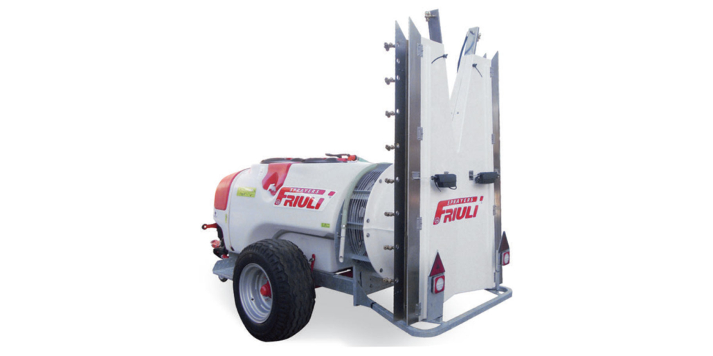 Приколка за прскање со пирамида, од реномираниот италијански производител Friuli Sprayers, со резервоар од 2000 литри, пумпа APS 121 и резервоар за чиста вода од 15 литри.