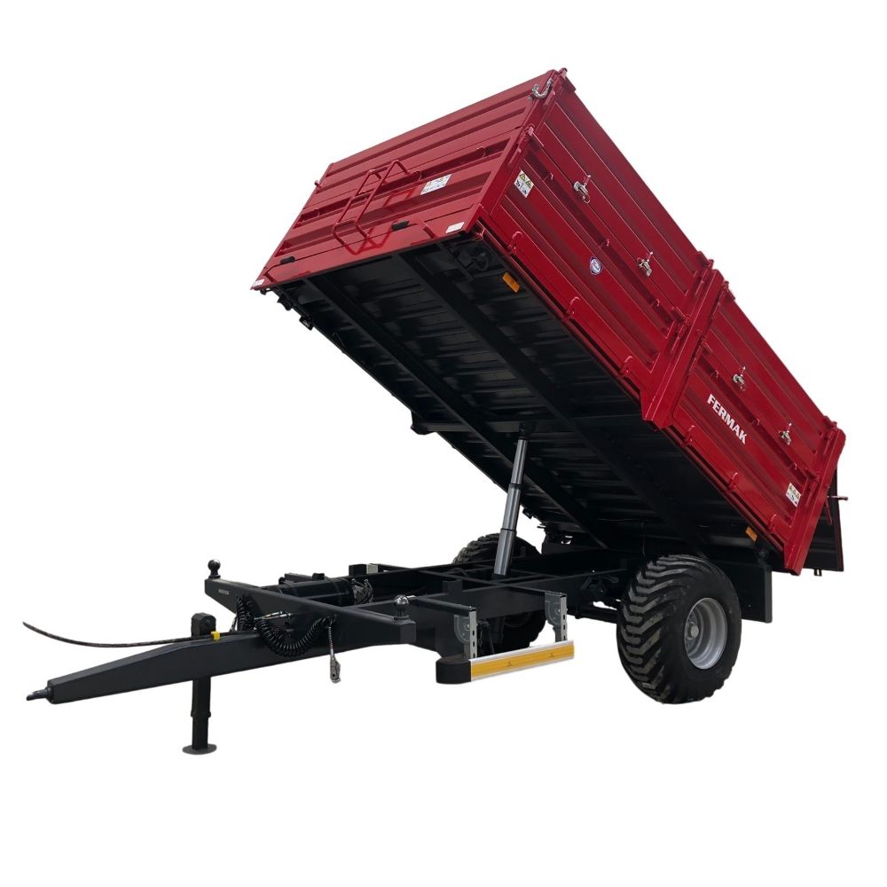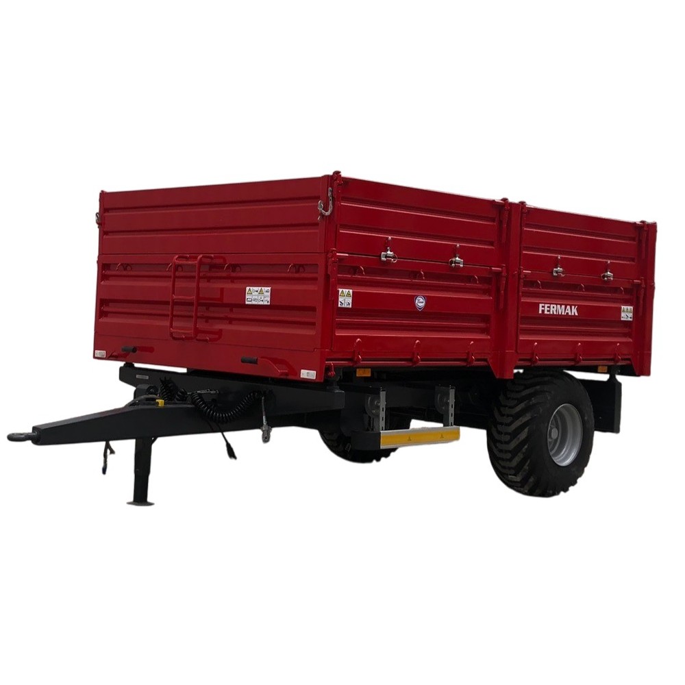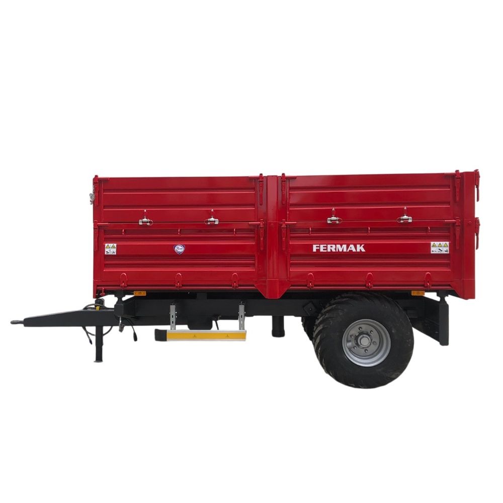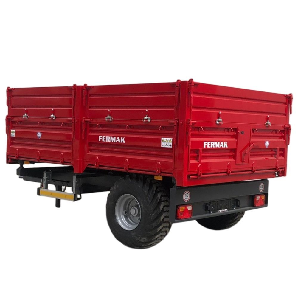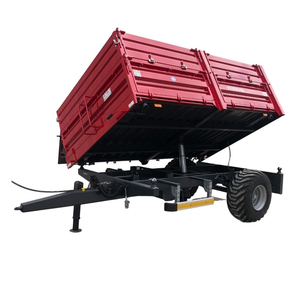Prikolica FERMAK 5t, jedna osovina, gume 400/60-15,5, vazdušne kočnice, trostrano kipanje, refuzne stranice, zadnji otvor