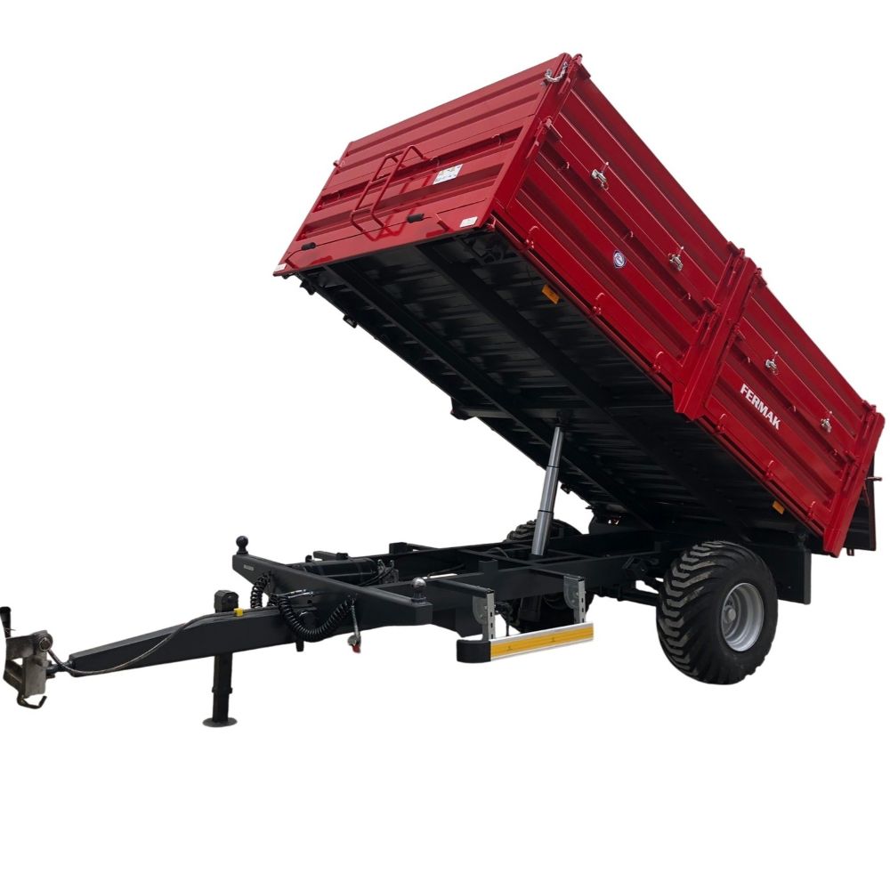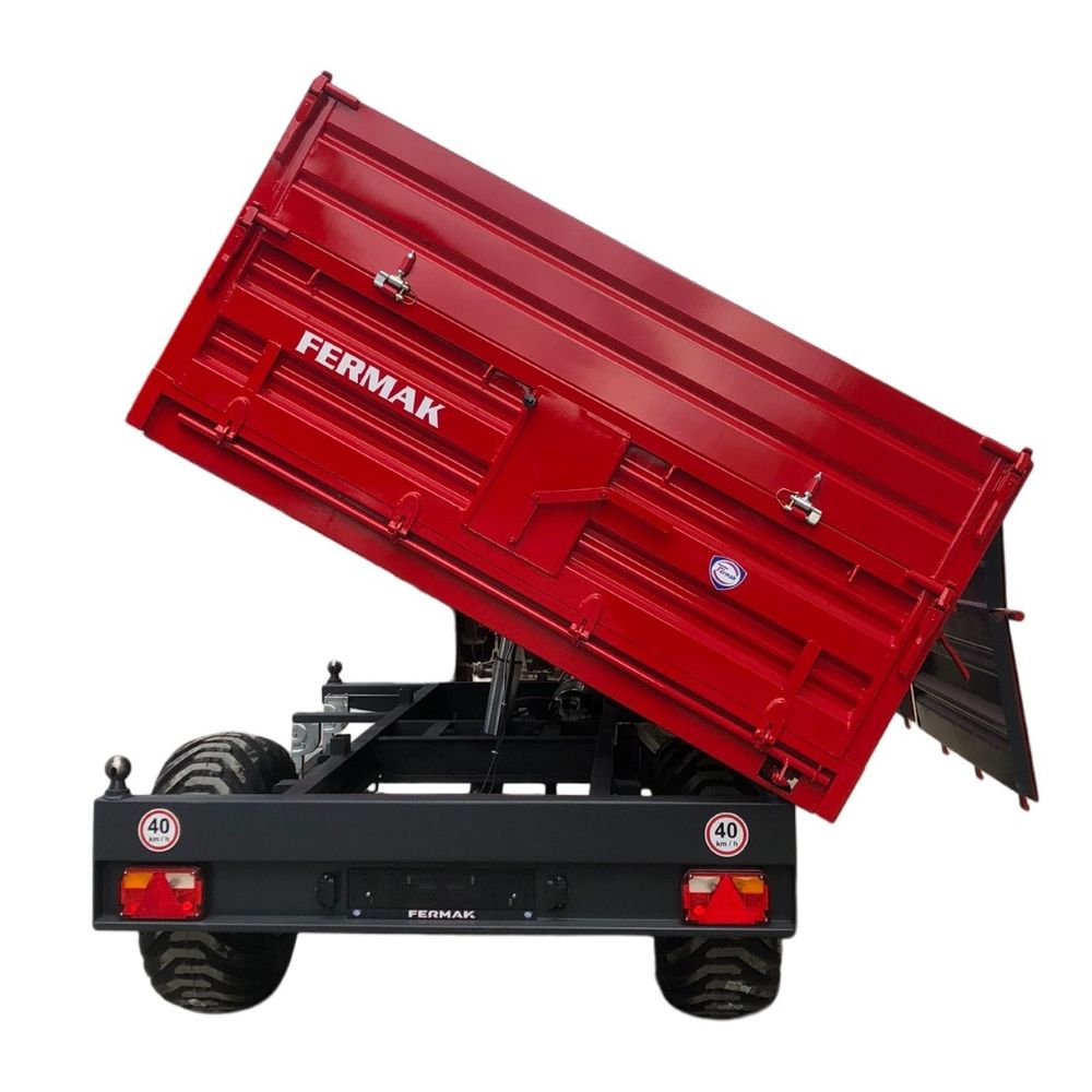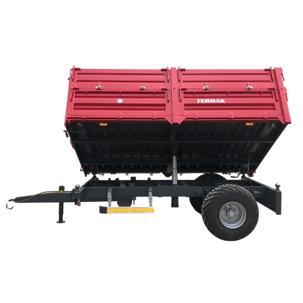 Prikolica FERMAK 6t, jedna osovina, gume 400/60-15,5, hidraulične kočnice, trostrano kipanje, refuzne stranice, zadnji otvor